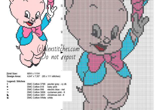 Baby Porky Pig with colored hat small Looney Tunes cross stitch pattern Pattern added on March 3, 2022 by Alex