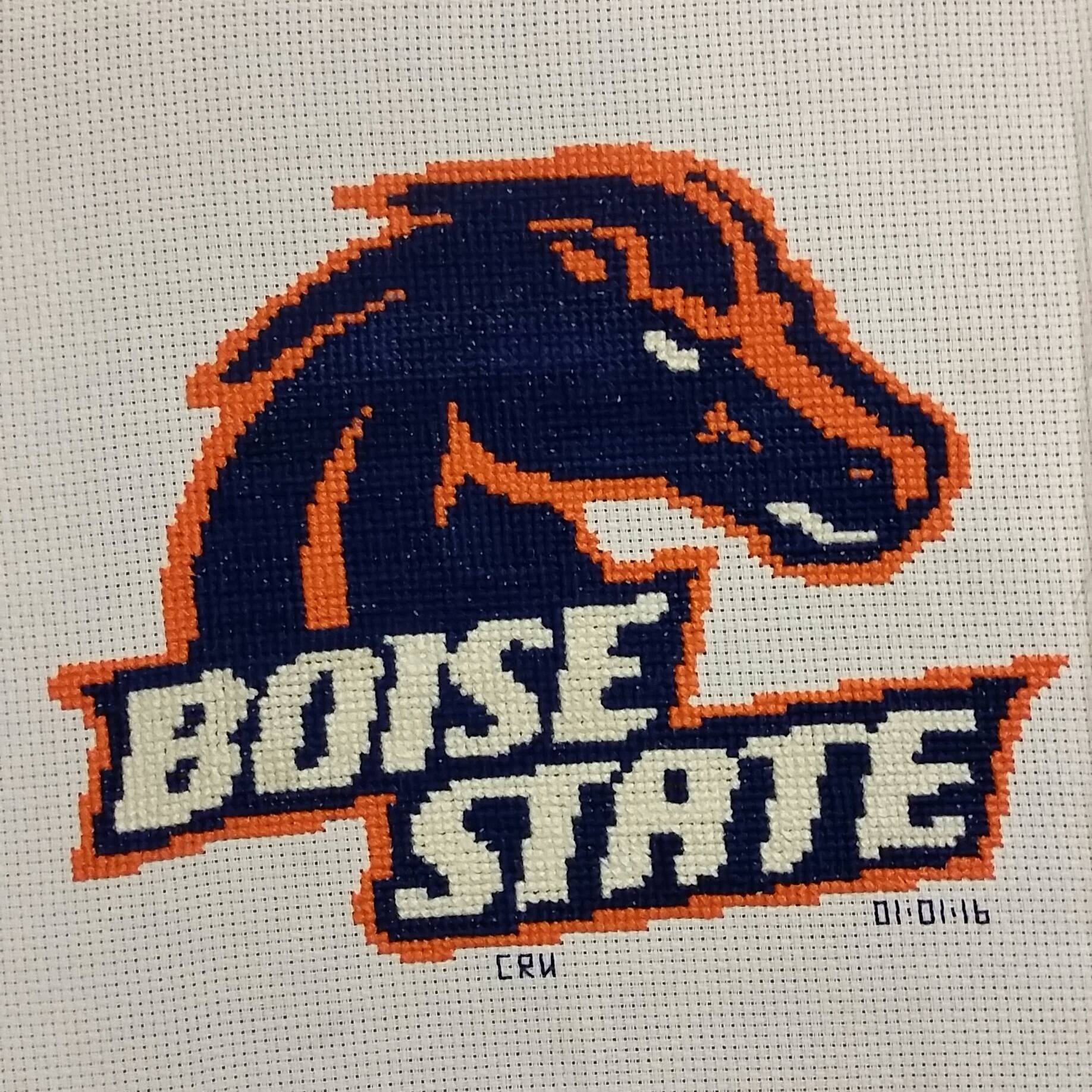 Boise State logo cross stitch finished work photo Author Facebook Fan Carrie Renae Uetz Pattern added on March 3, 2022 by Alex