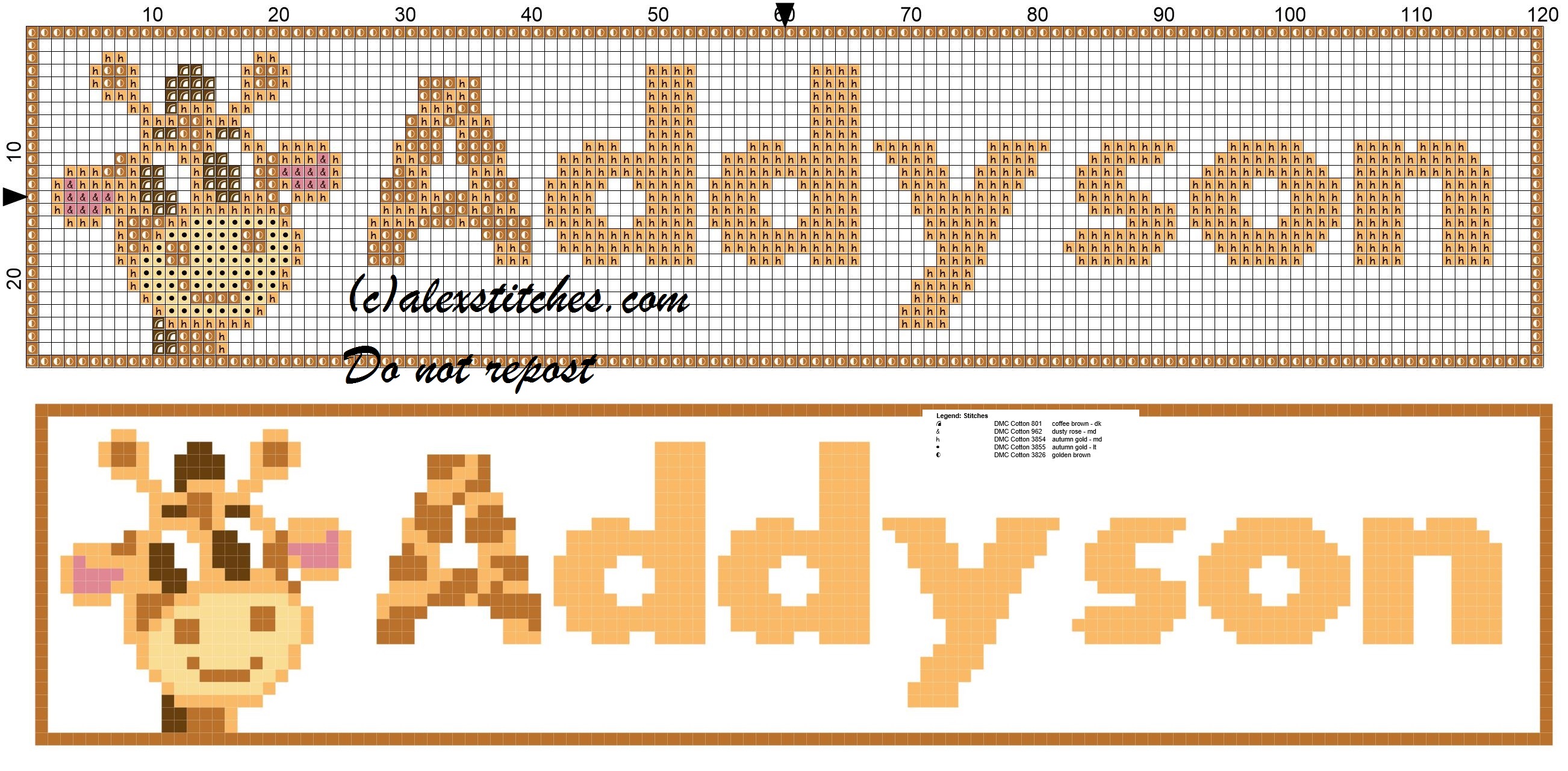 Addyson name with Baby winnie the pooh free cross stitches pattern