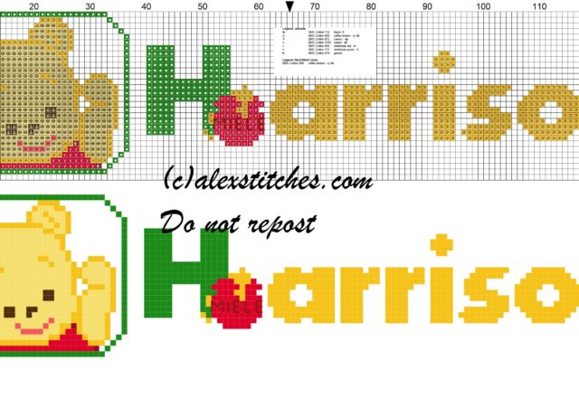 Harrison name with Baby winnie the pooh free cross stitches pattern Pattern added on March 3, 2022 by Alex